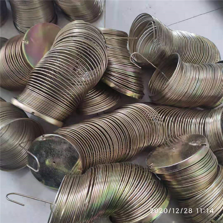 四、彈簧骨架的質量直接影響濾袋的工作狀態與使用壽命,彈簧除塵骨架后處理是經過表面鍍鋅或噴塑,也可根據客戶的不同工況要求,表面鍍其它涂層。自彈式彈簧骨架影響性能的因素: